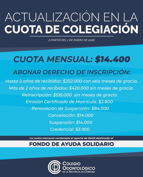 colegiación del Colegio Odontológico de la Provincia de Córdoba.